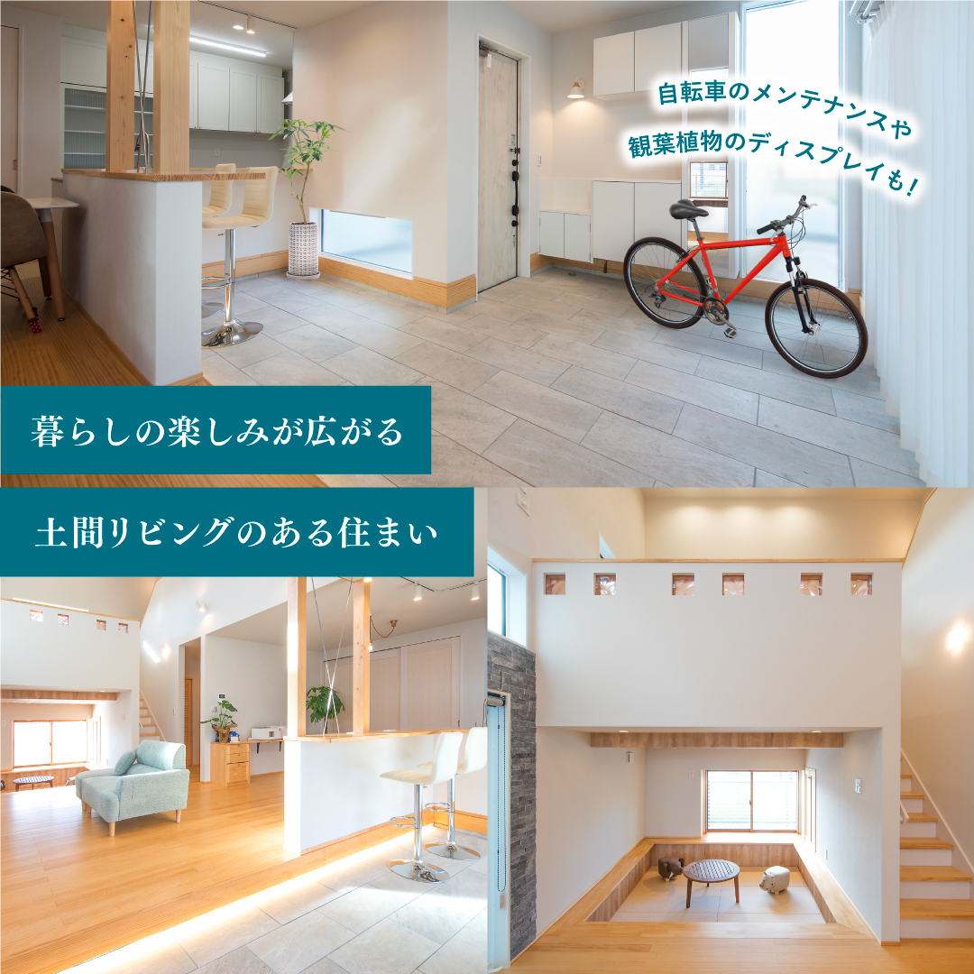 土間リビングや快適な動線設計など、住むほどに心地よさを実感できる住まいです。